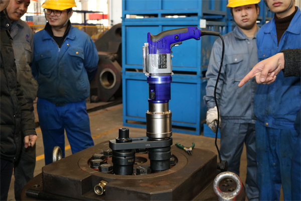 近日,BOLTING博霆為某能源企業(yè)提供電動扭矩扳手已順利交付,有效解決標準反作用力臂無法滿足現場工況的問題,為客戶解決螺栓定扭矩裝配難題,同時提高了螺栓裝配質量及效率。
